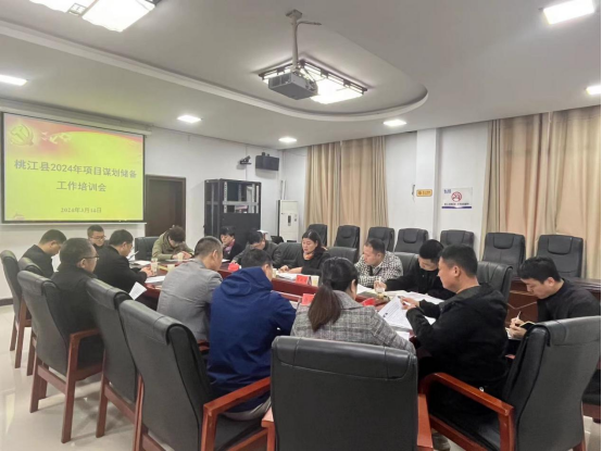3月14日,桃江县2024年项目谋划储备工作培训会在县发改局召开,县住建、农业农村、林业、水利、城管、城投集团、竹乡公司的主要负责人参加。会议对国家政策、项目谋划和储备申报等重点工作进行了详细解读,并传达了上级最新要求。与会人员就项目谋划储备中遇到的实际问题和挑战进行了深入探讨。