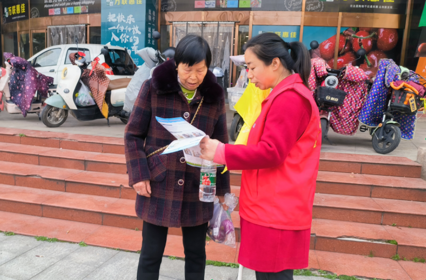 志愿者向群众发放宣传单 侯鑫 摄