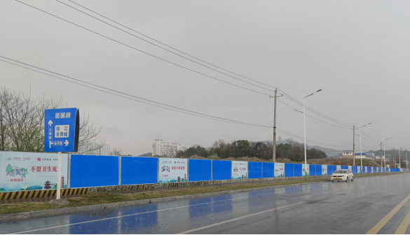 3月27日,笔者在雪峰山路看到,该处的规划建设用地已安装好精美的围挡并贴上了公益宣传广告,为城市注入了新的活力和美感。