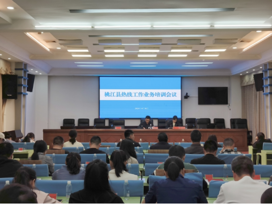 近日,桃江县热线工作业务培训会议在县政府大楼电视电话会议室召开,县综合指挥中心坐席员、县直相关职能部门联络员及社区书记等近100人参加培训。