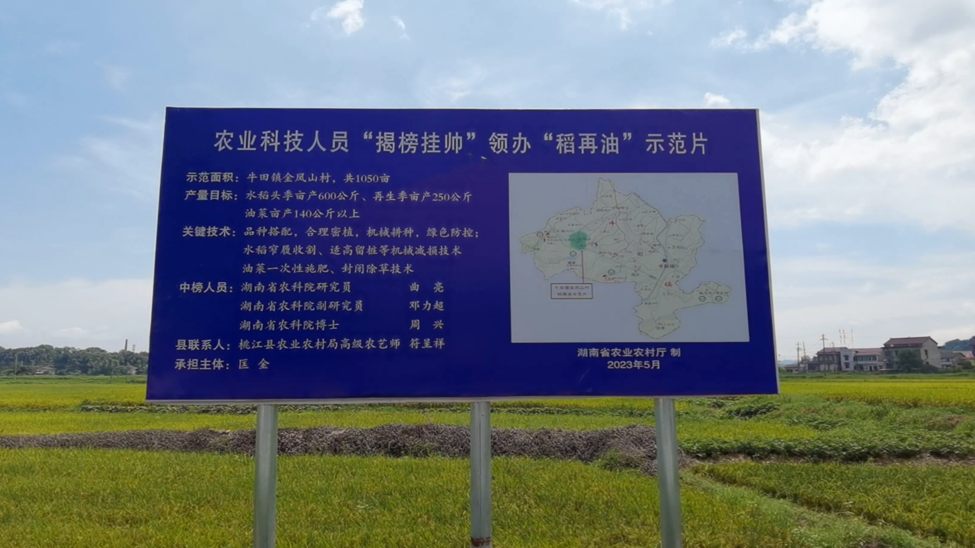 自我省启动省级农业科技人员“揭榜挂帅”领办示范片项目以来,省农业科学院研究员曲亮选择益阳市桃江县牛田镇金凤山村作为领办示范片,预计实现双季水稻亩产850公斤、油菜亩产140公斤以上的产量目标。