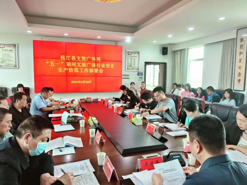 4月26日,县文旅广体局组织召开“五一”期间文旅广体行业安全生产防范工作部署会。局班子成员、二级机构负责人及文旅场所一对一责任人员参加。