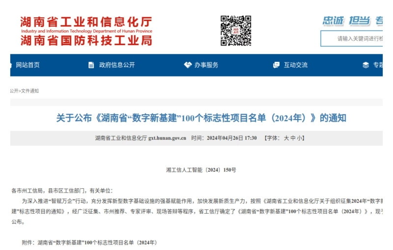 桃江一项目入选湖南2024年“数字新基建”标志性项目