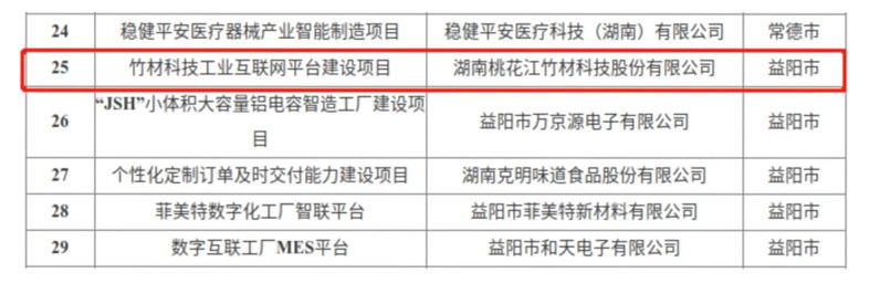 近日,省工信厅发布2024年“数字新基建”100个标志性项目名单,桃花江竹材工业互联网平台建设项目入选。