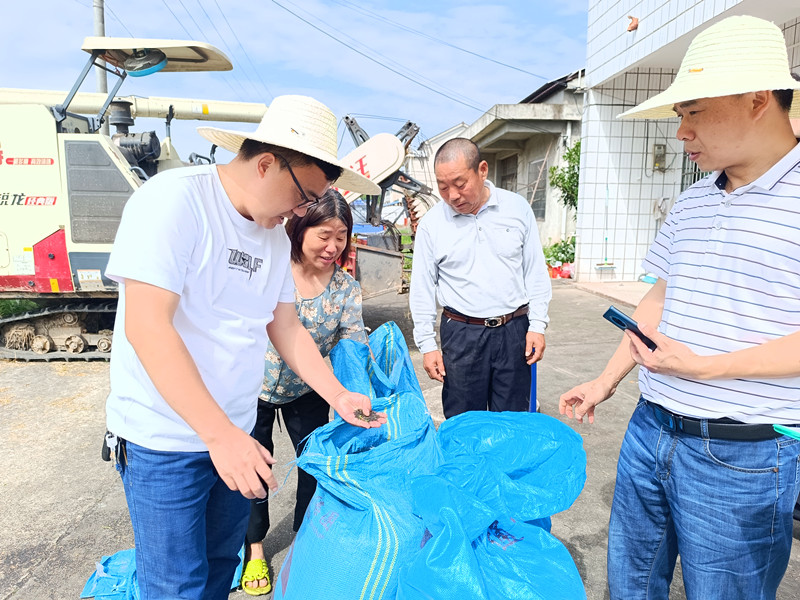在测产现场,由省棉科所正高级农艺师涂昌玉担任组长的测产专家组首先听取了油菜单产提升示范实施的情况汇报,随后在石牛江镇九家塅村、小坡头村两个示范片随机选定1亩以上丘块进行机械实收后,按照农业农村部办公厅关于印发《油菜单产提升三年行动方案》的通知要求,参照《油菜田间测产技术规范》,在农家院内进行称重、除杂、水分测定。