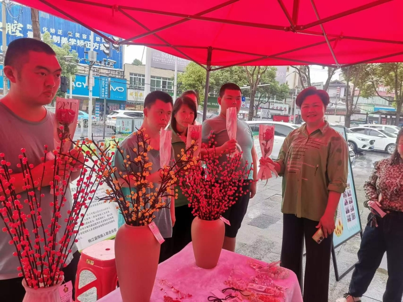 县残疾人托养中心和牛田镇残疾人托养中心携带学员精心制作的手工艺品在活动现场进行了义卖。过往群众纷纷驻足观看,对托养机构的老师和学员赞许有加,纷纷购买小手工艺品。