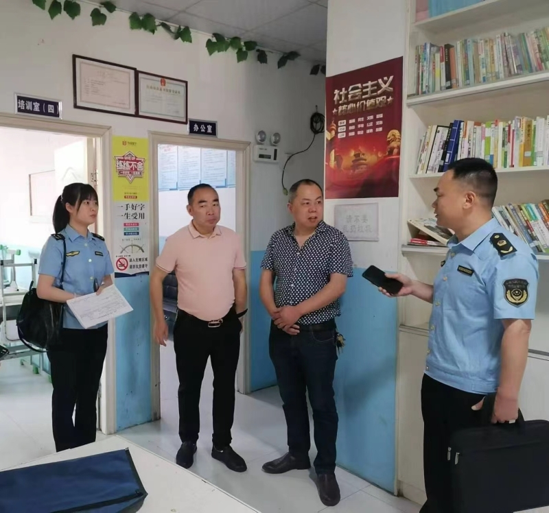 此次抽查采取系统随机抽取的方式,通过湖南省市场监管领域部门“双随机、一公开”监管平台抽取13家校外培训机构作为检查对象,抽取12名行政执法人员作为检查人员。各部门联合执法人员结合“利剑护蕾”行动,重点对校外托管机构的登记事项、食品安全、收费公示、卫生、教育、消防安全、房屋质量、治安等方面情况进行了全面检查。