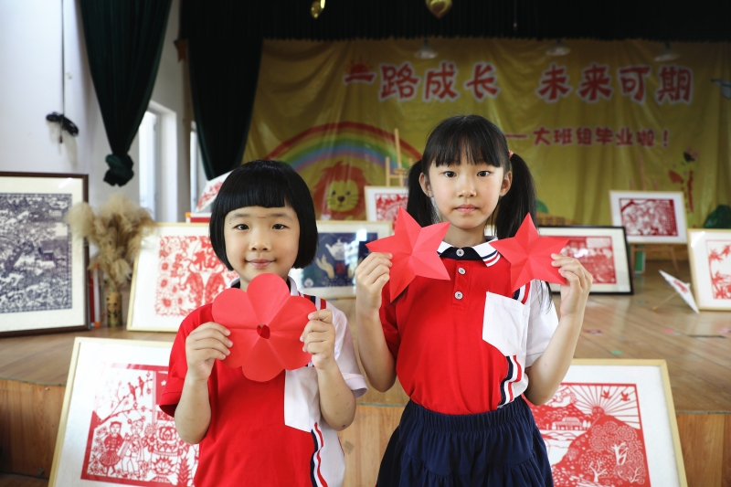 小朋友们展示自己的剪纸作品 张瑜 摄
