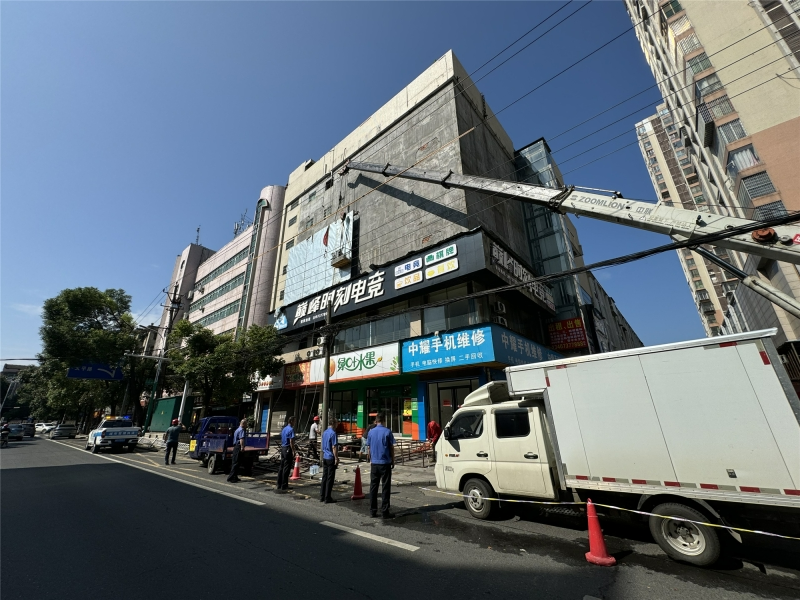 在拆除现场,施工人员先用专业设备对广告牌进行固定,并在地面设置了安全围挡,拉好警戒线,确保施工安全。随后,利用切割工具对广告牌进行逐步拆解,将拆解下来的材料进行折叠清理,确保不会对环境造成污染。经过一天的紧张作业,这一广告牌被成功拆除。