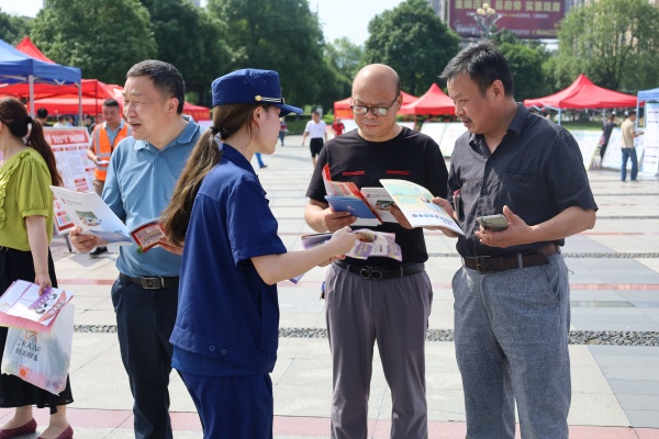 6月21日,县消防救援大队在金盆广场开展以“人人讲安全、个个会应急——畅通生命通道”为主题的安全宣传咨询日活动。