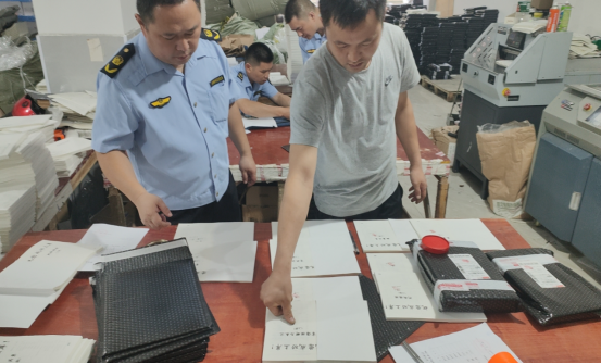 调查时,该门店负责人潘某无法提供印刷经营许可证、营业执照等资质佐证材料。执法人员当即告知其生产经营行为违反了《印刷业管理条例》第八条的规定“擅自从事印刷经营活动”,现场依法获取相关证据并责令其停止违法经营活动。