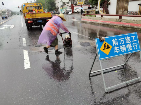 【迎战强降雨】抢修路面坑槽 确保汛期公路安全畅通