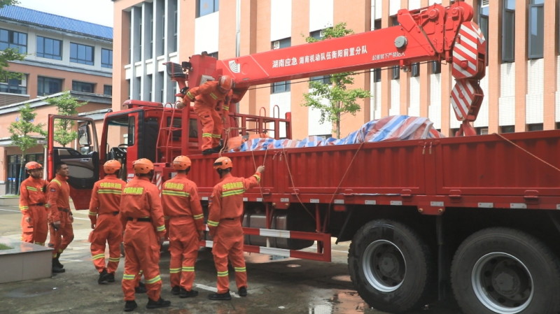 7月2日上午,记者在消防救援官兵的驻点县城桃谷山九年一贯制学校看到,官兵们正在整队对当天的洪水防御工作进行部署,负责车辆、通讯的官兵们也正忙于车辆的各种调试和检测。据国家消防救援局湖南机动队伍衡阳分队吴明江介绍,此次来桃支援的队伍来自国家消防救援局湖南机动队,由筹备组组长孙浩带前指9人及衡阳分队100人前置桃江县备勤,该支队伍携带有排涝车、砂石填装车、应急通信车等车辆12台,皮划艇、大功率排涝泵等抗洪抢险救援装备800余件套。