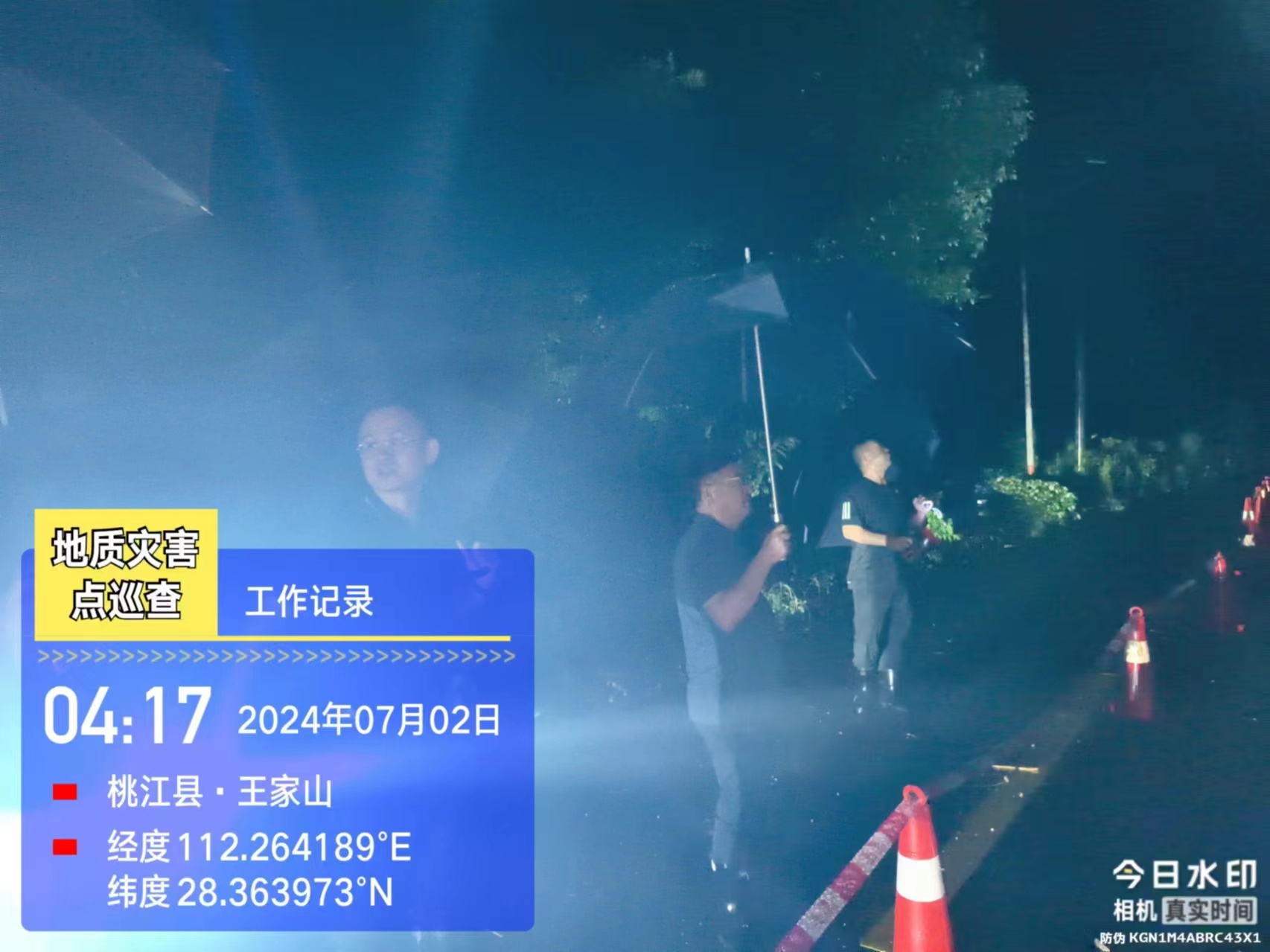 7月1日19点,全县地质灾害应急响应等级由Ⅲ级调整至Ⅱ级应急响应,县自然资源局连夜派出4个地质灾害防治技术指导工作小组,由局班子成员带队,派出省城调所技术人员5人、局工作人员12人,24小时应急处置技术指导保障队伍1支,出动车辆7台,分片下沉乡镇指导防灾减灾工作。县地质灾害指挥中心安排24小时值班值守3人。