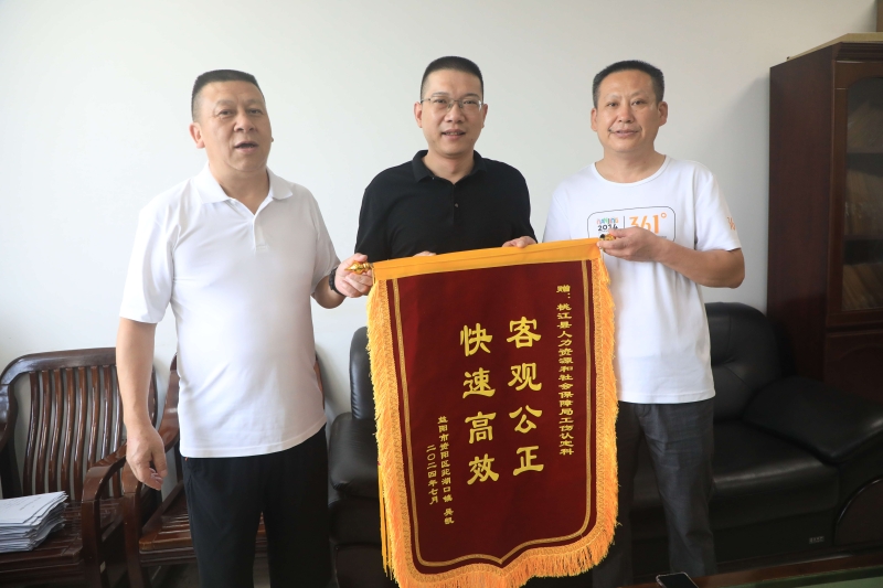 “衷心感谢你们依法办事,全心全意维护我们农民的利益,不愧是人民的公仆。”7月12日上午,家住益阳市资阳区茈湖口镇的农民吴凯将一面“客观公正 快速高效”的锦旗送到县人力资源和社会保障局工伤认定股,表达他对执法人员依法作出工伤认定、维护群众权益的感激之情。