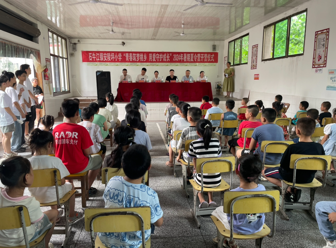 7月15日下午,“青春筑梦桃乡 用爱守护成长”2024年暑期夏令营开营仪式在石牛江镇安陵坪小学举行。