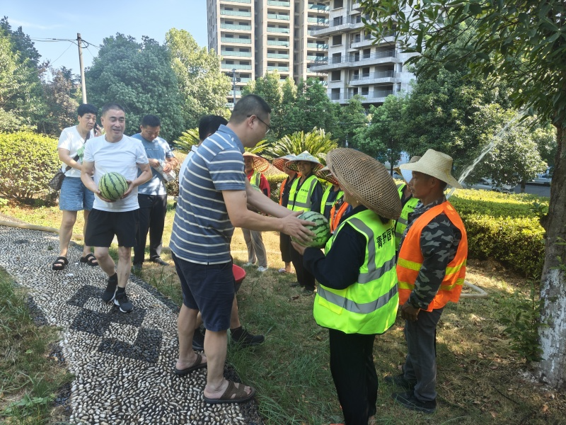 给园林工人发放消暑西瓜等物资 李璎 摄