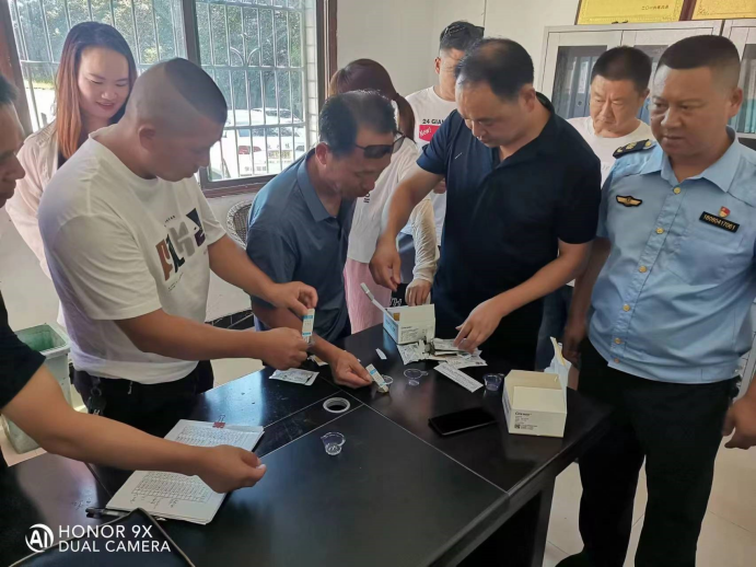 正值酷暑时节,参加尿检筛查的工作人员克服高温天气,采取城区集中采样和乡镇上门服务两种形式,引导筛查人员有序排队进行现场检测,将筛查人员身份甄别到位,并在检测结果登记表上签字确认。尿检过程中,工作人员抓住有利时机,通过发放禁毒宣传资料、讲解禁毒知识等。