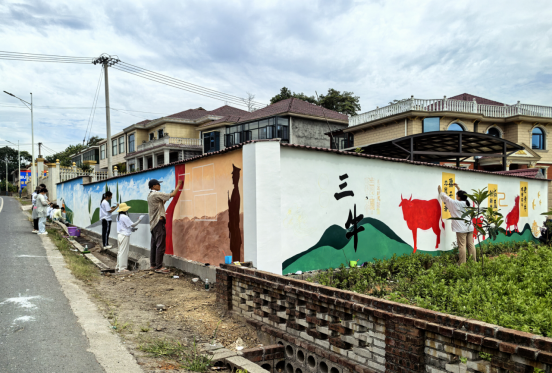 7月18日,牛田镇三塘湾村迎来了一场别开生面的艺术盛宴。通过团县委的积极联系,来自益阳师专科“三下乡”艺术团队,以墙绘的形式,为牛田镇的乡村风貌注入了新的活力。这些青年艺术家们深入乡村,与当地居民密切沟通,了解乡村的历史文化和自然风光,精心设计了多幅富有地方特色和时代气息的墙绘作品。从绿水青山的自然美景,到丰收的田野和勤劳的农民;从传统民俗到现代生活,每一幅作品都生动展现了牛田镇的独特魅力。