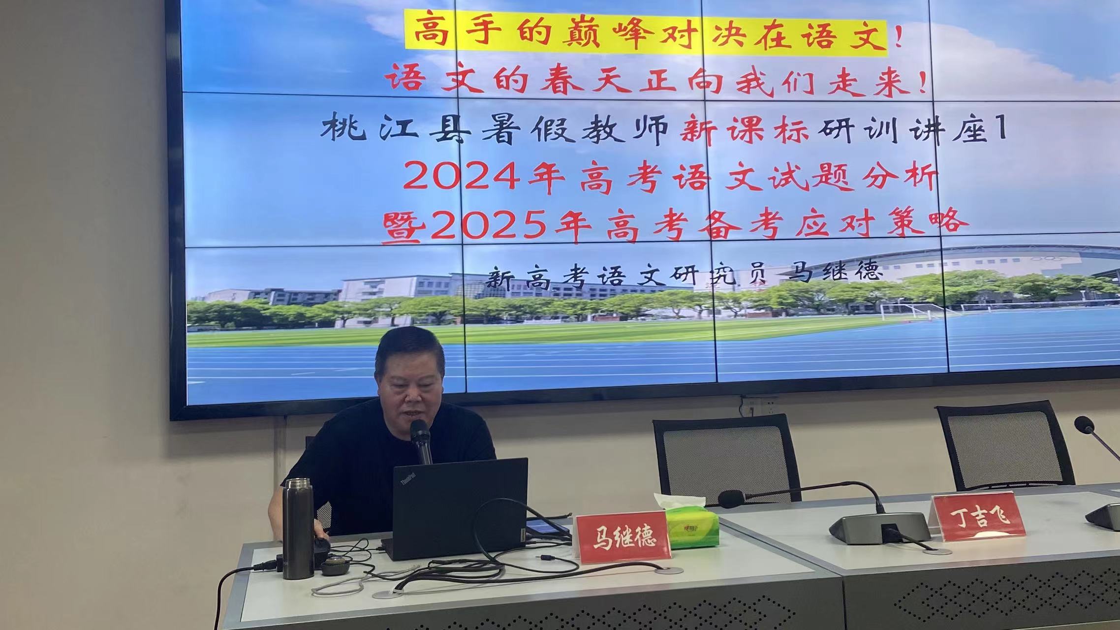 当天的培训邀请长郡中学的语文研究员马继德老师授课。马继德对2024年高考试卷进行了分析,并就2025年高考备考策略给出了指导。在解读高考试题时,马继德从坚持铸魂育人的思想定力、激发科学探究的创新活力、增强语文学科的实践动力等,为参训教师清晰地梳理了试题的脉络和命题思路,并为高中语文备考提出了十条宝贵建议。他还围绕语文6大核心素养,以《56分及以上作文必须跨越的台阶》为题作了专题讲座。