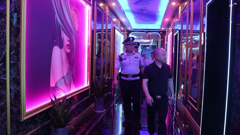 7月27日晚上,县公安局联合市监、教育、卫健、文旅广体局、融媒体中心等部门,针对辖区内的宾馆酒店、网吧、KTV、沐足店等重点场所定期联合开展“利剑护蕾·雷霆行动”专项清查行动。