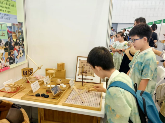 “桃花江竹玩”系列玩教具在大赛展示现场深受学生喜爱 黄霖 摄