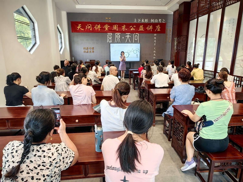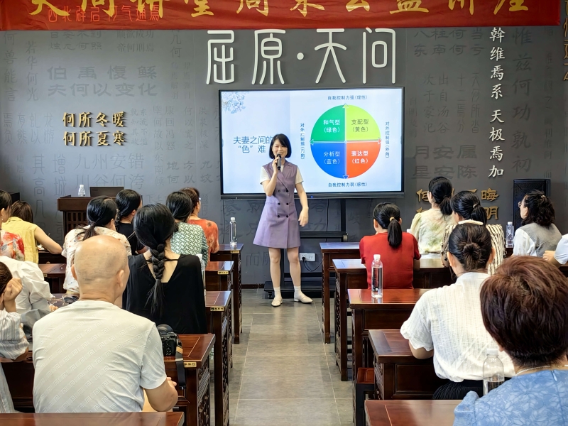 8月18日上午,“天问讲堂”周末公益讲座第七讲在桃花江竹海景区“天问书院”开讲,特邀国家人社部高级礼仪讲师、湖南省礼仪文化研究会常务理事、桃江籍礼仪专家汤谨瑜授课。