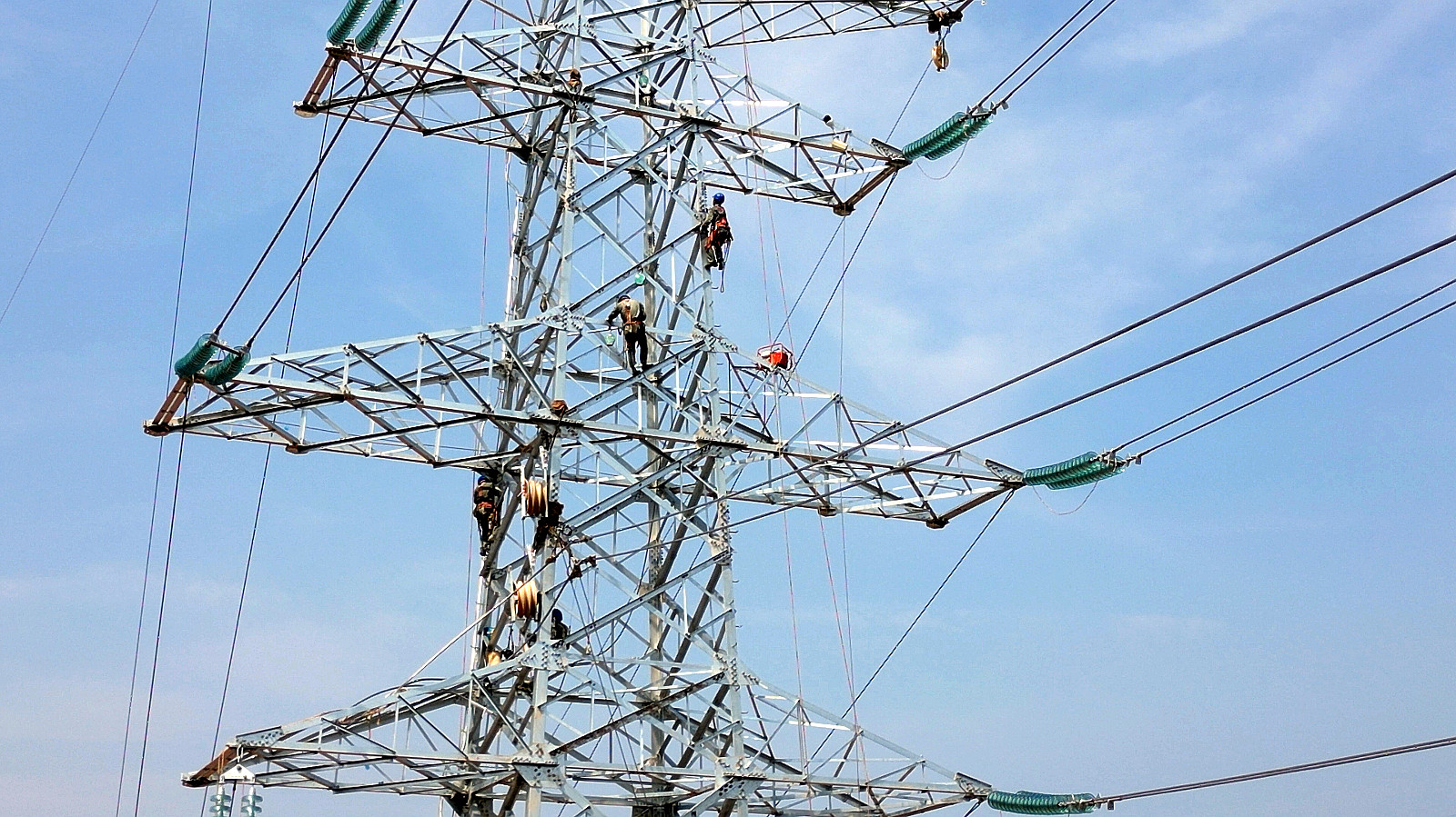 工人正在铁塔上施工 张璇 摄