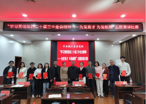 10月24日上午,县委党校举办“学习贯彻党的二十届三中全会精神——为党育才 为党献策”主题演讲比赛。参赛选手结合自身工作经历和理论学习成果,用鲜活的事例、真挚的情感、生动的语言,畅谈了自己对“为党育才 为党献策”的理解,以鲜明的观点和对今后工作的展望,展示了新时代党校教师将以更加饱满的热情、昂扬的斗志、务实的作风为建设富饶美丽幸福新桃江贡献力量的信心和决心。
