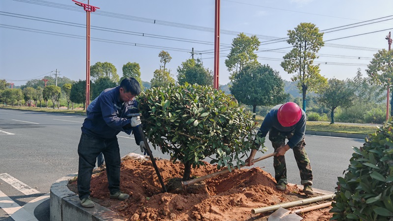 11月10日,县城管执法局市政管理站在县城西环线开展灌木移植。
