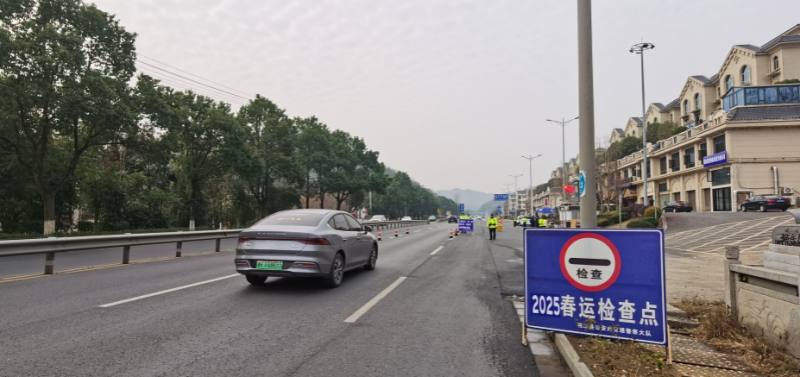 上午8时许,在国道536桃花江紫金湾春运临检站,执勤民辅警正在对过往车辆开展例行检查,重点检查客、货运车辆、农村面包车等重点车辆。