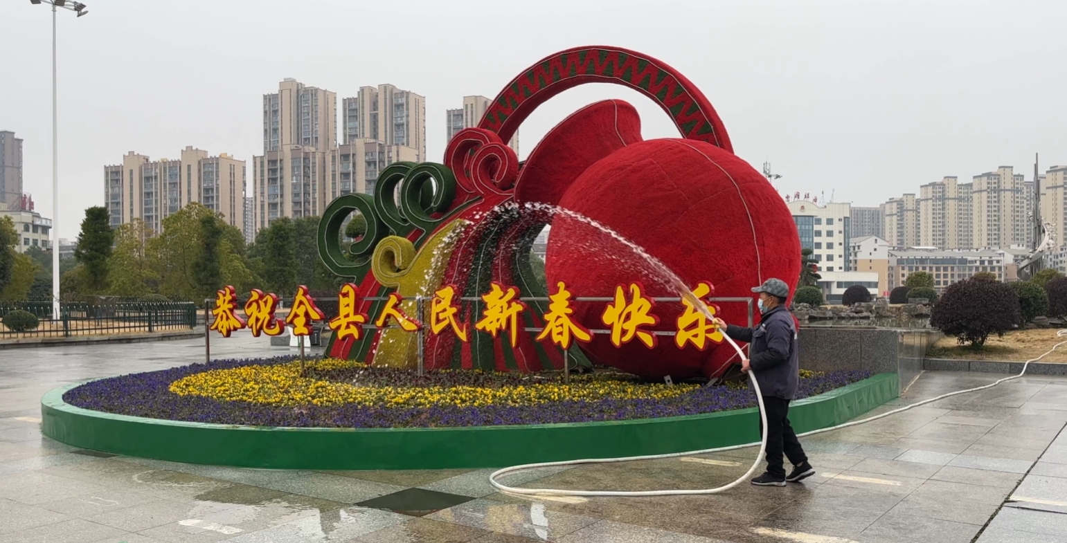 春节期间,在县城金盆广场和各口袋公园,园林工人坚守岗位,有的栽苗、浇水,有的清理杂草、修枝,精心呵护着城市的一片片绿地。春意正浓的县城处处花团锦簇、绿树成荫,景色宜人。