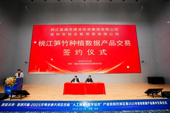 2月26日,2025年首届粤港澳大湾区“人工智能+数字经济”产业协同发展峰会暨2025年全国首批数据产品集中交易仪式在深圳举行,来自全国30个市县人民政府、200多家企业及创新机构的近300位代表参会,深入探讨人工智能和数字经济在各行业的应用。“桃江笋竹”和“竹美文旅”作为益阳市首批完成包装上市的两款数据产品,在此次活动中完成了首次交易。