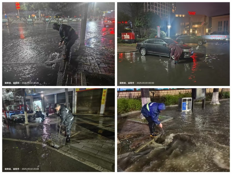 期间,组织应急排涝队20余人上路巡查值守,对原地税局前、城乡客运公司、华美店酒店附近等多处易涝点实施专人蹲点值守,清理雨水箅堵塞垃圾杂物,打开排水口促排,确保行人车辆通行顺畅。
