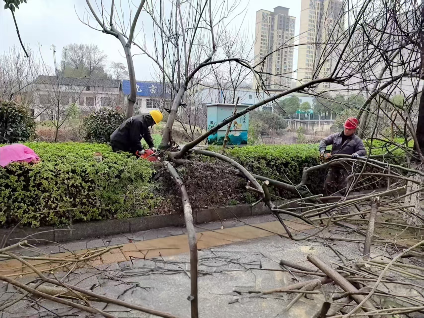 清理绿化带内残枝树叶