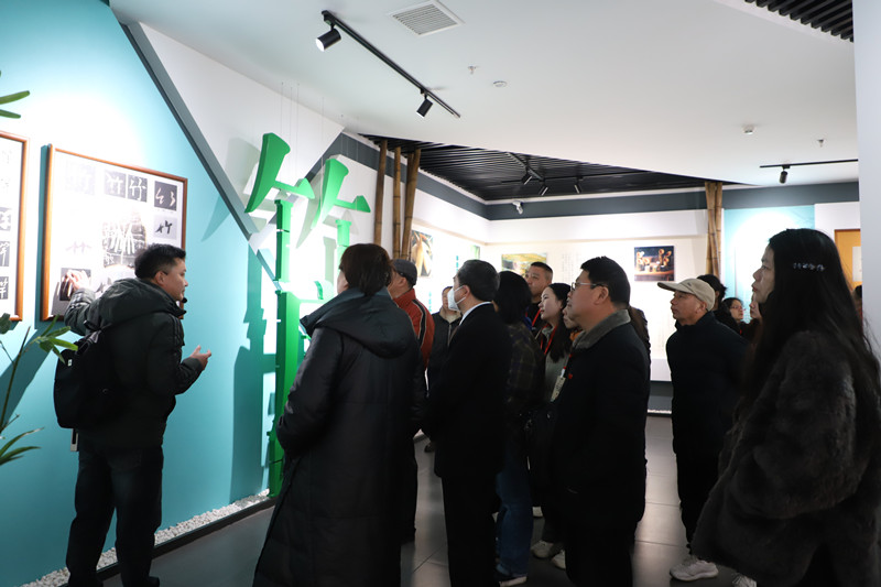 众人首站抵达桃花江竹海景区的竹文化博览馆。这是湖南省首座以竹为素材的主题场馆,建筑面积超2000平方米,收藏近千件展品,设有序厅、历史、资源、产业、食品、非遗、文化、交流八个展厅。该馆以竹资源为载体、竹文化为主题、竹产业为依托、竹科技为引导,让参观者深切感受竹的魅力与竹文化的博大精深。随后,大家前往天问书院,深入了解屈原在桃江的生活轨迹以及桃江本土特色文化资源。