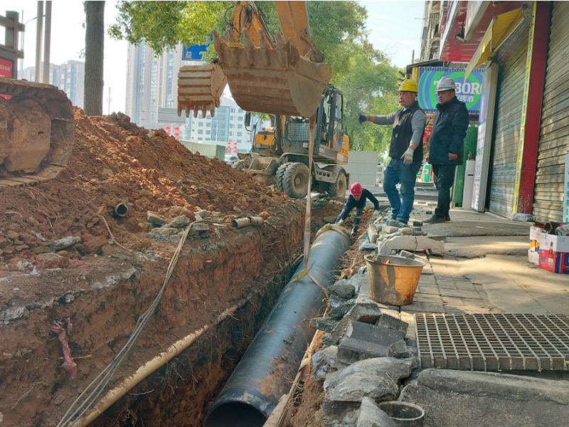 由于施工沿线店铺密集,人员、车辆较多,电力、燃气、通信等市政管线错综复杂,为最大程度降低施工对周边居民生活和全城供水系统的影响,确保工程有序开展,供水公司强化组织领导,从人员配置、施工方案和机械配备等方面进行了精心准备。在施工前及时发布信息、张贴公告,施工过程中采取“先安装新管、后废除旧管”“分段推进、快速回填”等作业模式,保证安全到位。
