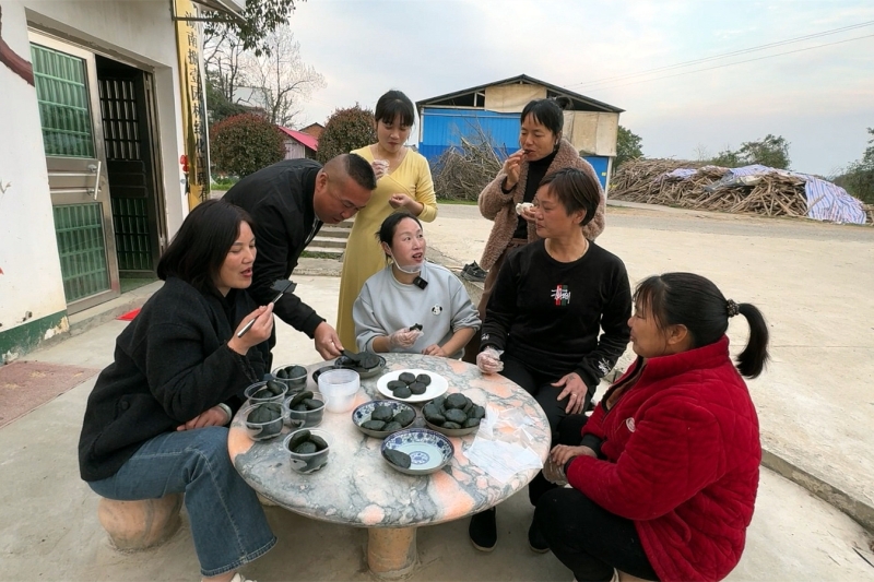 蒸锅白雾氤氲时,另一侧的项艳红已架起了直播设备,姐妹俩利用油炸蒿子粑粑的空档开启了线上直播。随着油锅里粑粑炸得嗞嗞作响,直播间里的粉丝也沸腾起来,甚至吸引了一批周边的村民前来试吃品尝,无人不夸赞蒿子粑粑美味可口、软糯香甜。
