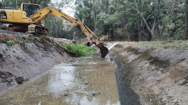 挖机对渠道内部淤泥展开清理 曾慧浩 摄