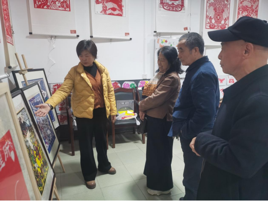 这一次回到家乡,颜教授特意来到桃江县剪纸协会,了解桃花江剪纸艺术创作和成就。县文旅广体局党组书记、局长吴建平向颜教授介绍了桃江县非物质文化遗产保护与传承工作,希望颜教授为桃花江剪纸早日申报成功省级、国家级非遗献计出力。同时表示,县文旅广体局将全力支持申报工作。桃江县剪纸协会会长彭惠纯,剪纸老艺术家莫雪芬、肖国新详细介绍了相关情况。
