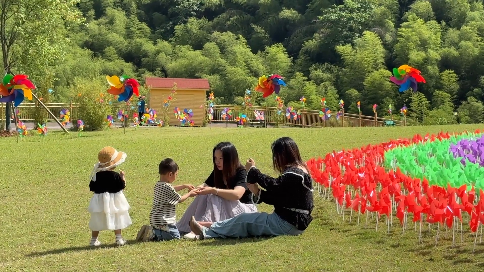 景区其他配套项目同样精彩纷呈。竹博览馆前的七彩风车长廊则打造出一片梦幻天地。数万只彩色风车随风转动,这一视觉盛宴成为游客必到的打卡胜地。在天问书院举办的竹韵书法展上,百余幅职工书法作品巧妙融合了桃江竹文化与美人文化精髓。游客们来此驻足细品,或低声吟诵,感受笔墨与竹韵的交融。逛竹博览馆,打卡“大竹笋”,欣赏精彩演出,再到竹海市集品尝特色小吃,广大游客体验到了充实与快乐。