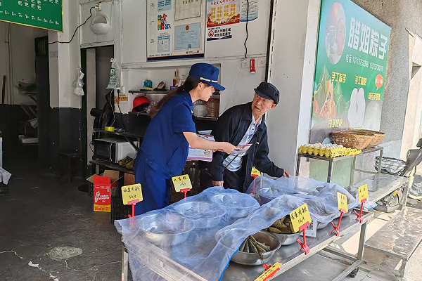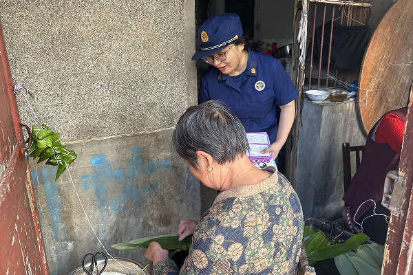 消防宣传员在走向人流密集的闹市街头为沿街商铺、零散摊点及过往群众发放消防宣传资料,同时针对端午期间特有的民俗活动与家庭习惯普及消防安全常识,通过“面对面”的宣传讲解,“一对一”的交流互动,现场讲解如何发现和消除常见火灾隐患、正确拨打119电话报警、扑救初起火灾、正确从火场疏散逃生等知识。工作人员还叮嘱群众长时间蒸煮粽子时要遵循“厨房用火不离人”的铁律,提醒清理灶台周边可燃物,油锅务必小心看护;温馨提醒过往群众在室内悬挂或点燃艾草驱虫时,务必远离窗帘、纸张等易燃物,保持足够安全距离,熏燃过程全程监护,用后彻底熄灭。