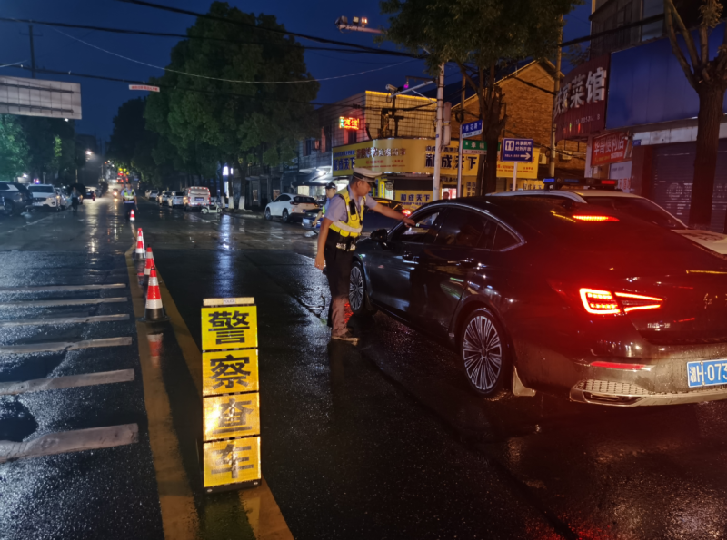 交警在桃花江镇三角坪路段设卡查酒驾 秦滔 摄