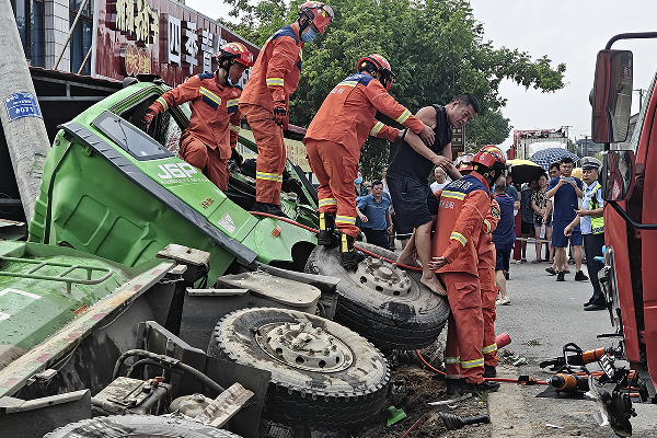 7月13日上午08时,县消防救援大队接到报警称:石牛江镇九家段村发生车祸有人员被困。接到报警后,桃花江消防救援站立即出动3车12人赴现场处置。