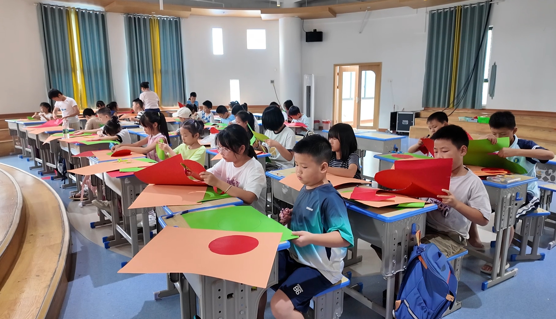 暑托班大班的孩子们正在剪纸 莫非易 摄