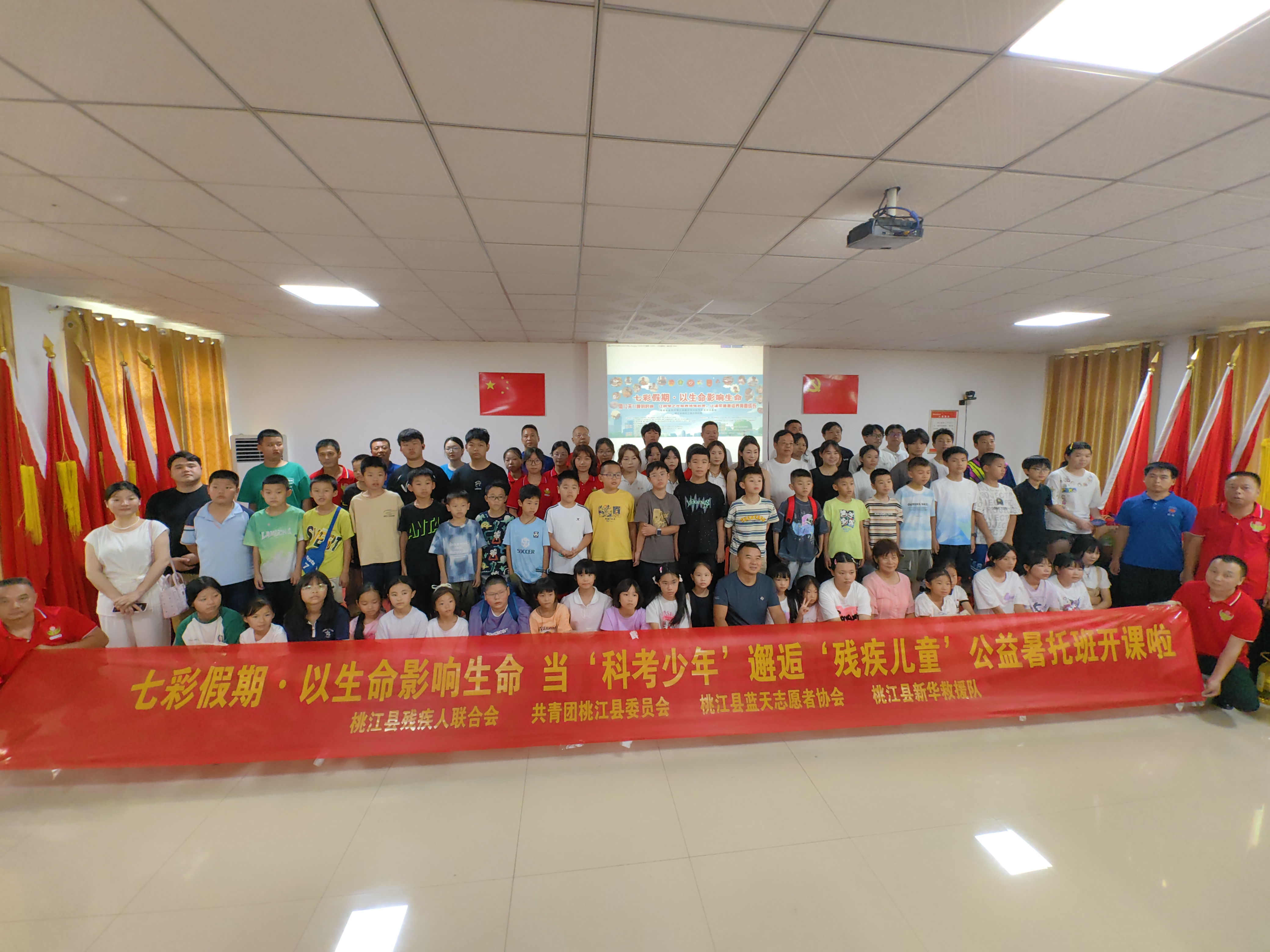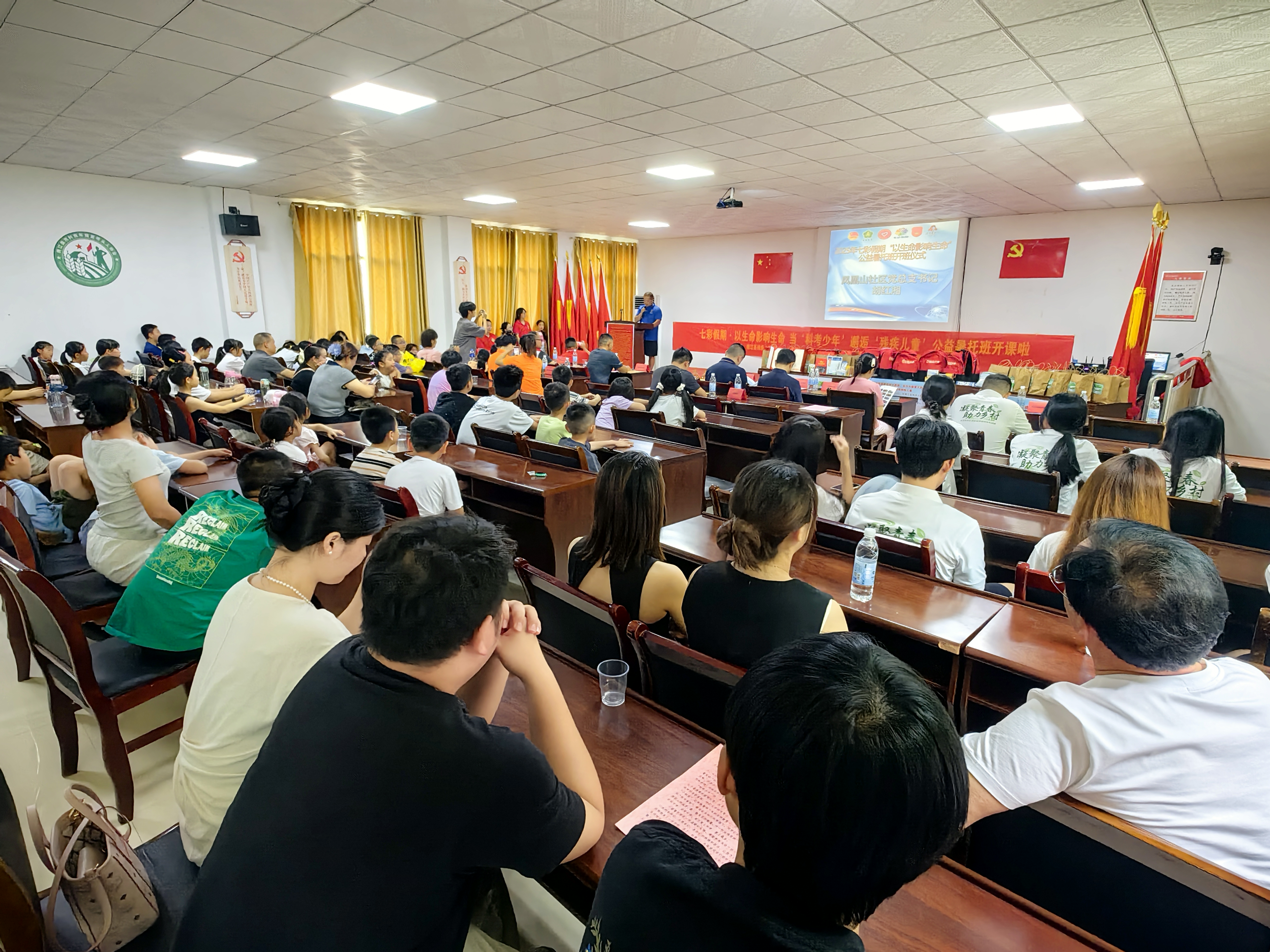 7月18日上午,桃江县“七彩假期”关爱留守儿童公益活动在桃花江镇大华村村委启动。