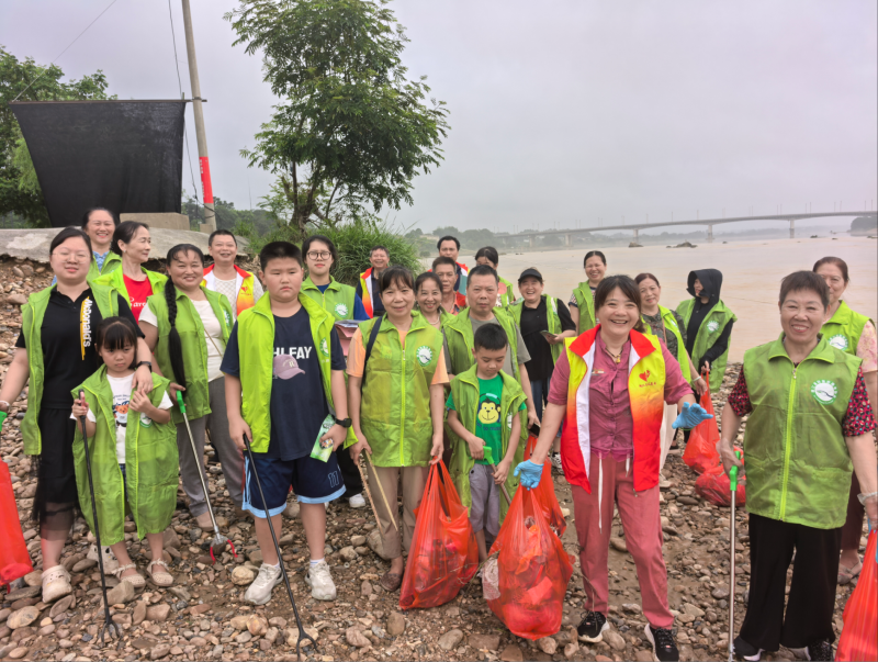 7 月24日上午,县环保志愿者协会浮邱山分会与资水志愿者协会的四十余名志愿者,顶着 30℃+ 的高温齐聚县城资江河岸,开展环卫清扫与防溺水宣传活动。