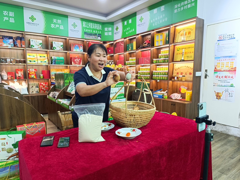 杨朝辉正在直播卖鸭蛋 袁静 摄