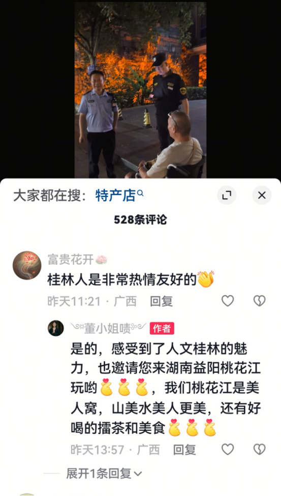 事后,董女士通过抖音分享这次经历,获数千网友评论。“桂林警察靠谱!”“桂林人是非常热情友好的!”“山水美,人更暖!”等留言刷屏。