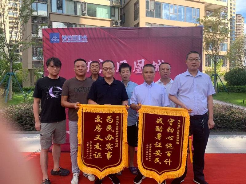 活动现场,业主代表将两面锦旗送至县住建局和自然资源局工作人员手中,“为民办实事 交房又交证”“守初心施百计 战酷暑证安民”的字句,道出了业主们诚挚的谢意。